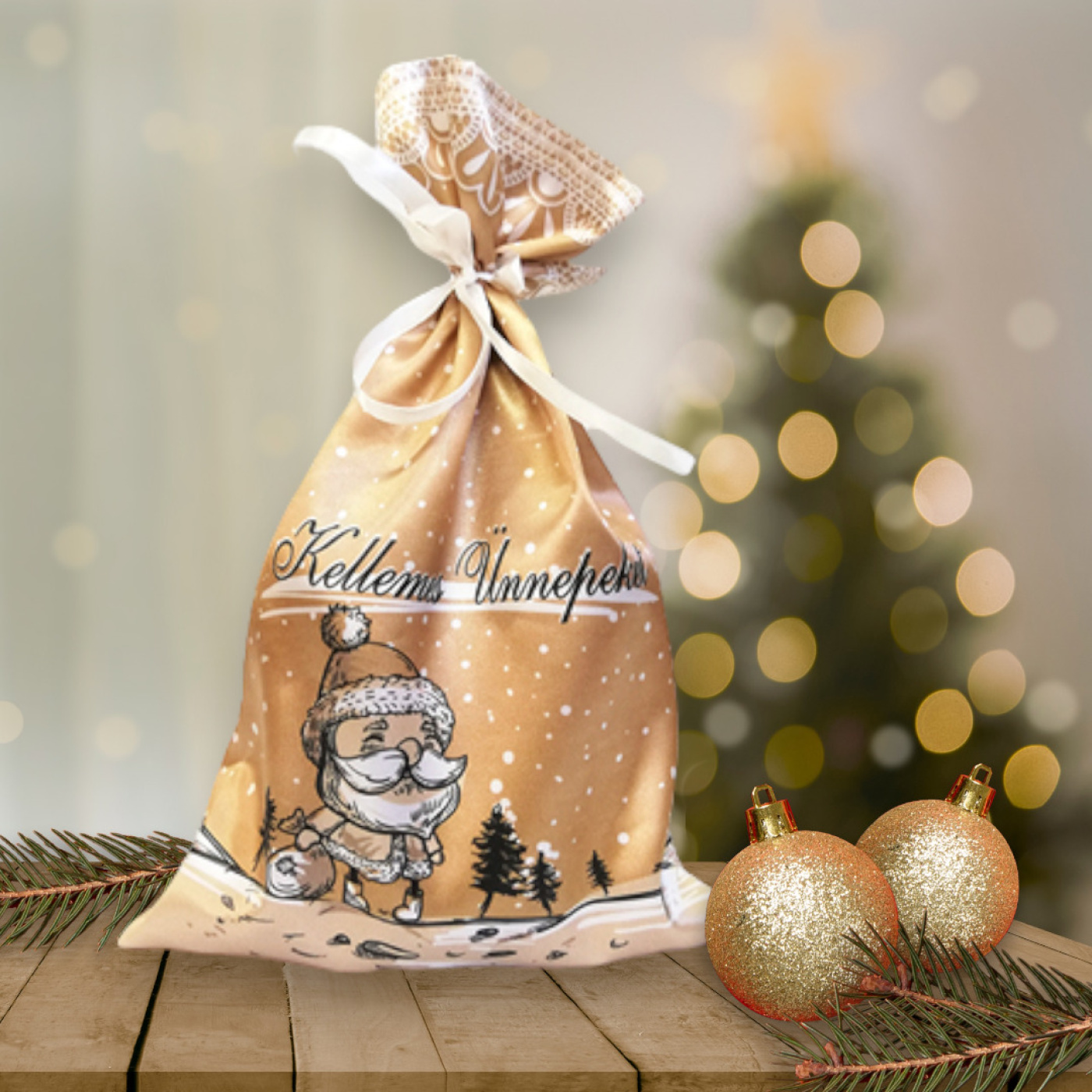 Idén először lehetőség nyílik arra is, hogy a zsákokat személyre szabja a gyermekek vagy munkatársak nevével, cégük logójával, vagy akár egy kedves üzenettel. A mintának csupán az Önök képzelete szab határt! Az előre elkészített sablonok mellett grafikus kollégánk is rendelkezésükre áll, hogy segítsen megvalósítani egyedi ötleteiket.